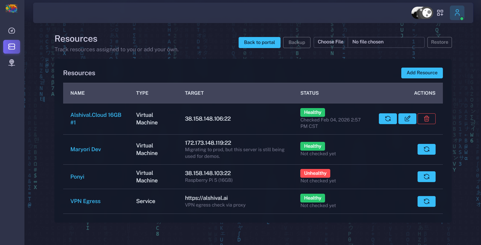As we continue building cloud experiments like Alshival.Cloud and monitoring systems like Resource Manager, it’s important that our operational backbone grows alongside them. Software and hardware aren’t separate worlds for us — they’re parts of the same system.